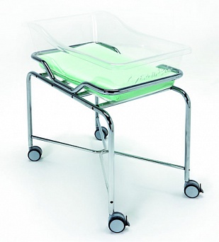 Тележка выполнена из стальной хромированной трубки, с ободом для кювеза и горизонтальными перекладинами, которые позволяют перемещать кювез в положения тренделенбург и антитренделенбург. Съемный кювез выполнен из прозрачного плексигласа.