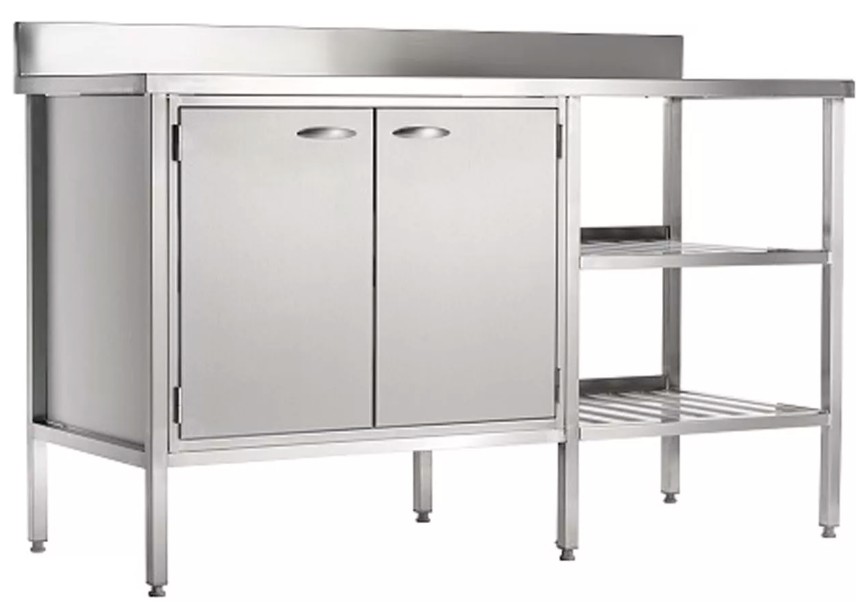 Кроме того, столы-мойки можно оснастить, необходимыми мебельными модулями: полками, шкафчиками, выдвижными ящиками, направляющими. При необходимости дверцы шкафов и выдвижные ящики оснащаются мебельными замками.