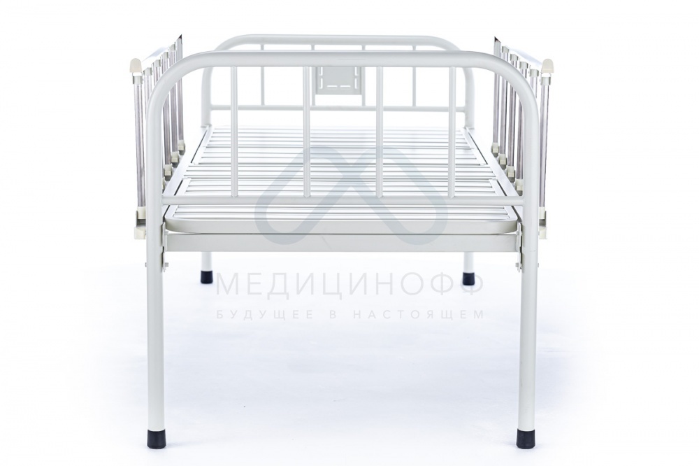 Кровать имеет фиксированную высоту, легко собирается и разбирается при помощи специальных фиксаторов. Медицинское изделие состоит из каркаса, многосекционного ложа и торцевых спинок.
