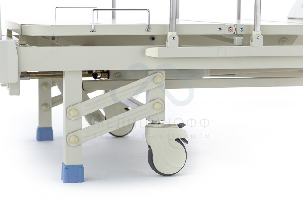 Медицинская функциональная механическая кровать оснащена регулируемым подголовником. Удобные технологическими крепления для установки дополнительного оборудования. Кровать укомплектована торцевыми панелями из ABS пластика с защитными бамперами.Медицинская функциональная механическая кровать А-5 оснащена 4 держателями матраса. Кровать можно установить на любое покрытие. На ножках есть полиамидные накладки, которые предотвращают порчу напольного покрытия. Удобная бесступенчатая регулировка подголовника обеспечит длительную фиксацию пациента в любом положении.