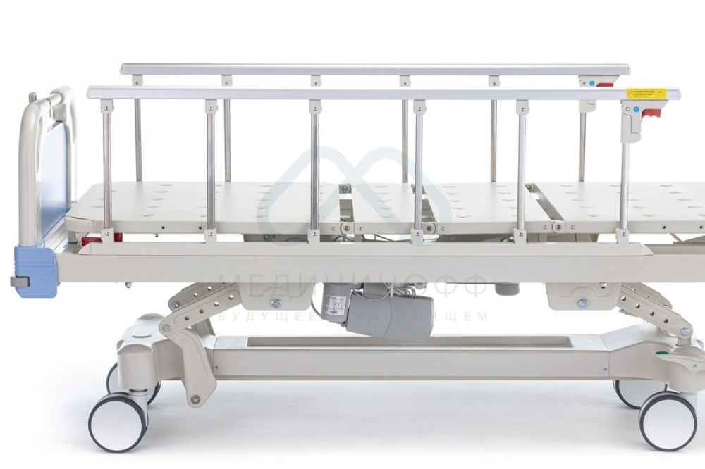 - Кровать медицинская электрическая оснащена складывающимися боковыми ограждениями из нержавеющей стали, которые при необходимости можно опускать. Такие ограждения защищают пациента от падения с кровати. Торцевые спинки легко снимаются, обеспечивая простой доступ к пациенту.