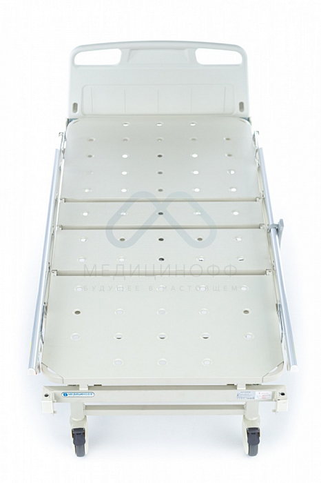- Кровать состоит из 4 секций, 3 из которых подвижны. Имеется вспомогательная тазовая неподвижная секция.