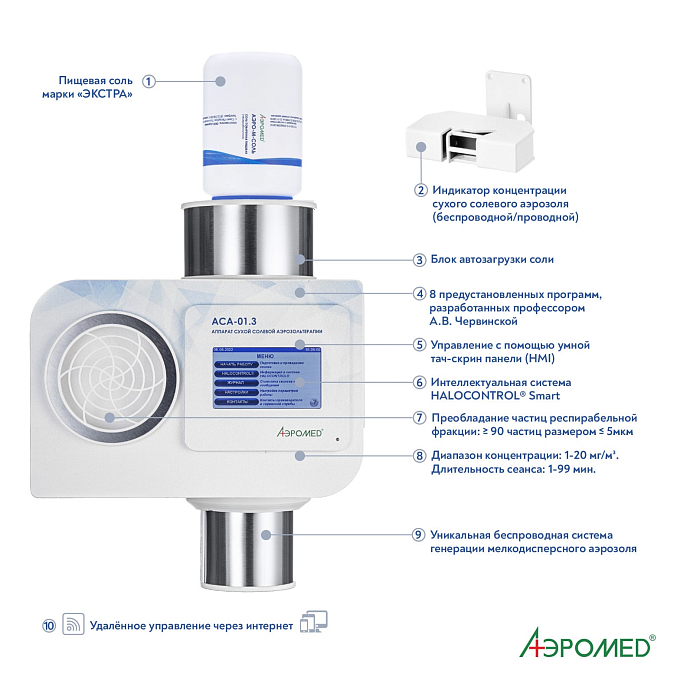 АСА-01.3 СМАРТ в полной мере и наилучшим образом позволяет реализовать методику управляемой галотерапии.