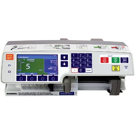 Современный инфузионный насос с большим цветным дисплеем, ручным приводом штока шприца, оснащённый системой защиты пациента, позволяющей исключить ошибочное введение опасных доз лекарства, системой быстрого обнаружения окклюзий и системой быстрого определения разъединения линии пациента. Насос предназначен для работы со шприцами от 2 до 60 мл распространенных компаний-изготовителей. Осуществляется расширенный мониторинг параметров инфузии, (графики и журналы событий), обмен информацией через ИК-порт и USB-порт. Рекомендуется для использования в отделениях анестезиологии, реанимации и интенсивной терапии, в том числе у новорождённых с экстремально низкой массой тела. |