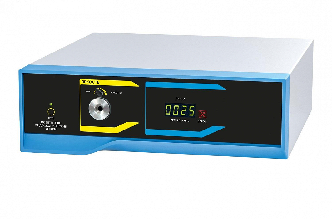 Осветитель эндоскопический "АКСИ" 9700-01 для жесткой эндоскопии выполнен в компктном корпусе, что позволяет разместить его на аппаратной стойке любого производителя. В данном осветителе используется ксеноновый источник света мощностью 175 Вт. Срок службы ксеноновой лампы около 1500 часов. Для удобства визуализации времени работы лампы на лицевой панели осветителя установлен «счетчик времени работы лампы».