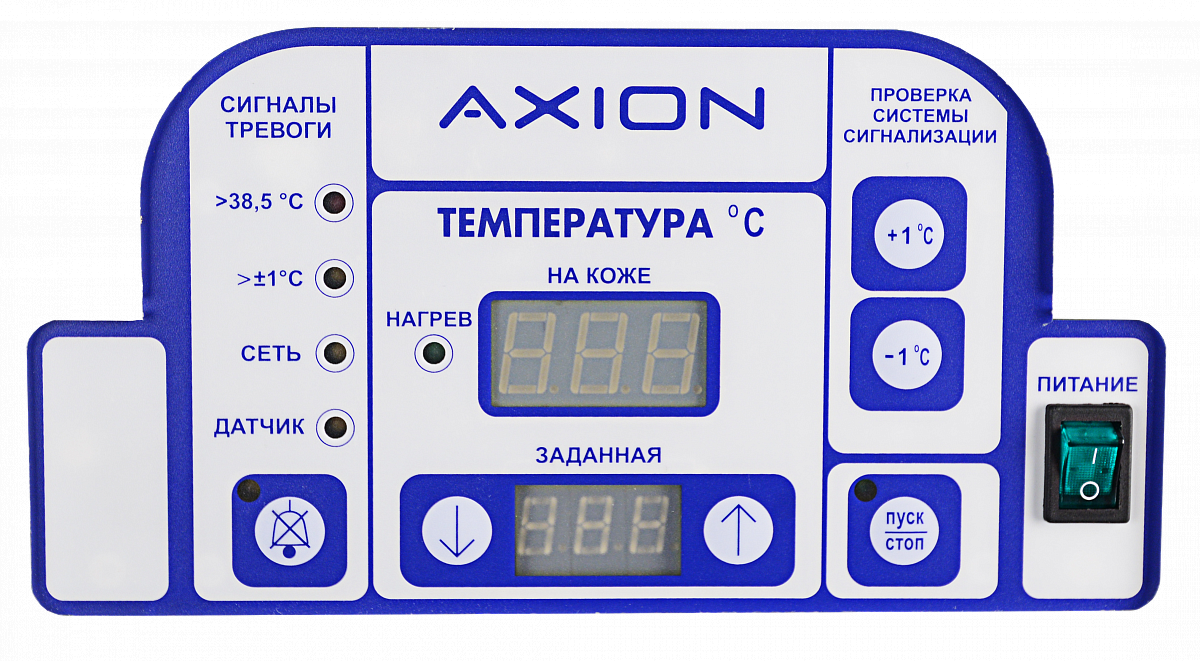 - Система слежения за отклонением температуры на коже пациента на величину более, чем на ±1°С от заданной, включается через 1 час после начала обогрева.