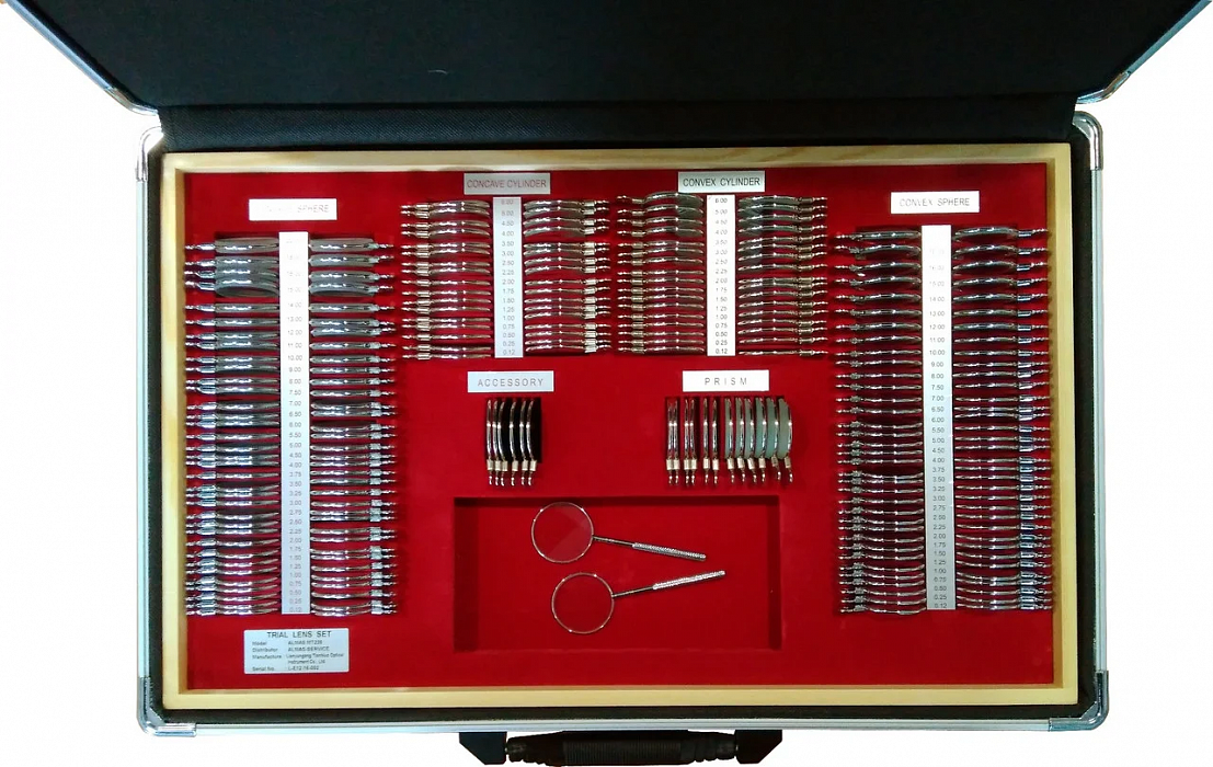 Наборы пробных очковых линз используются для подбора корригирующих очков методом субъективной пробы, объективного определения рефракции глаза, а также при проведении др. офтальмологических исследований.