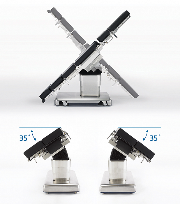 Управляемый гибридной системой привода, Amadis обеспечивает стабильность и гибкость артикуляционных движений. Оптимальное положение Тренделенбурга и Обратного Тренделенбурга, боковой наклон и максимальное скольжение модульного операционного стола Amadis обеспечивают наиболее подходящее положение для любой хирургической процедуры.