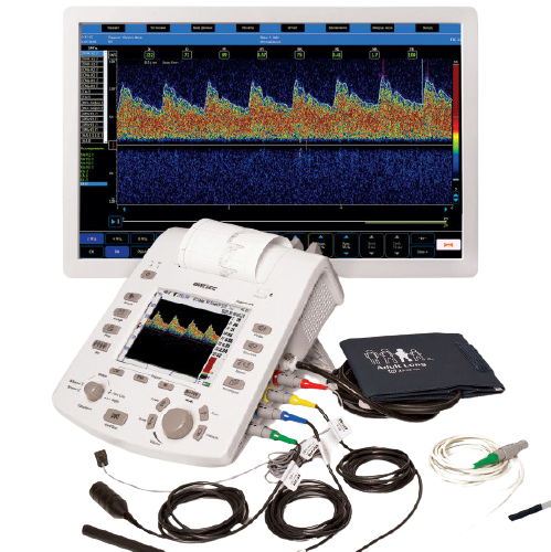 Прибор Ангиодин-УК предназначен для проведения допплеровских исследований артериального и венозного периферического кровообращения с возможностью автоматической регистрации уровня систолического артериального давления, автоматическим расчетом плече-лодыжечного индекса ABI.