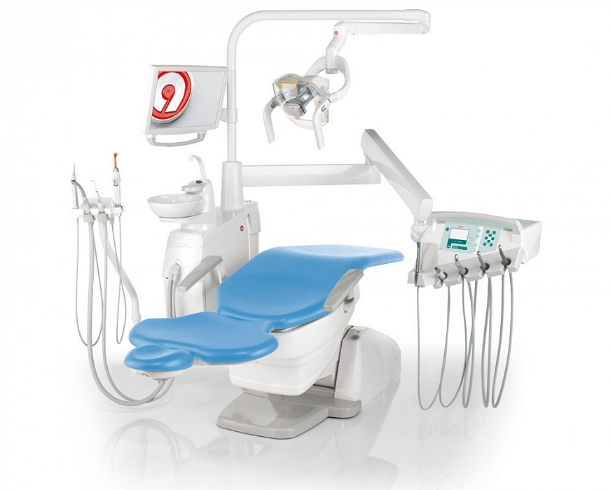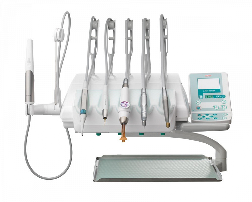 - Пылесос, слюноотсос, 2 места для установки дополнительных инструментов: пистолет вода/воздух, полимеризационная лампа или и/о камера C-U2