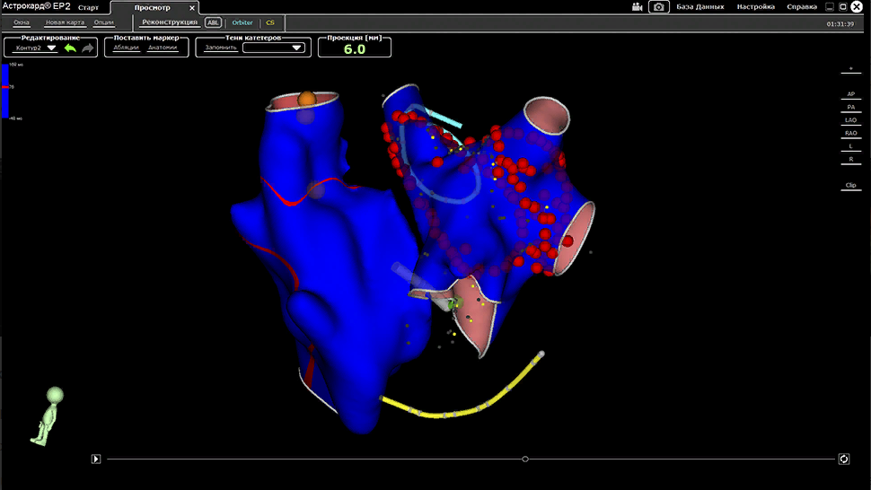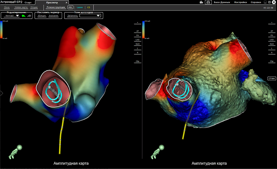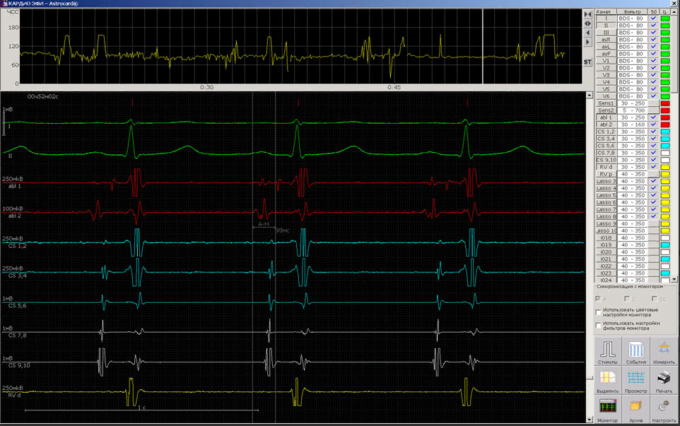 Регистрация 128 эндокардиальных каналов и 12 отведений ЭКГ