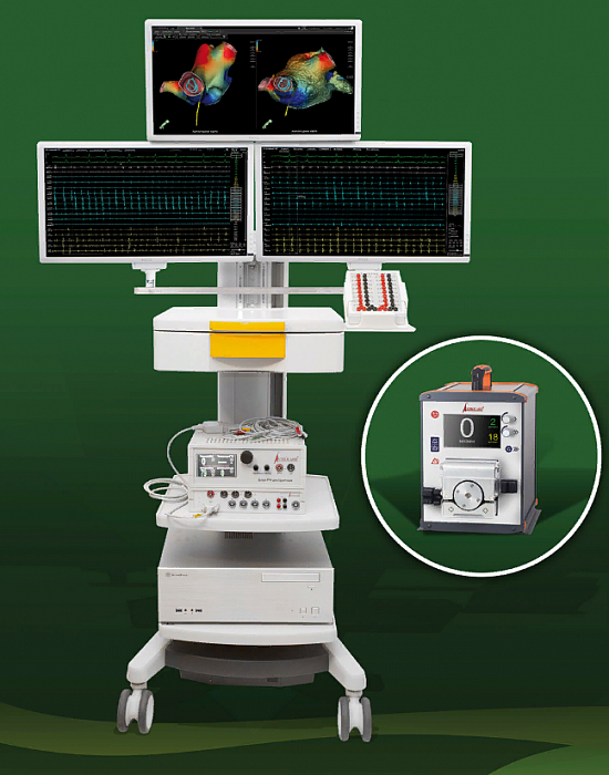 Комплекс предназначен для проведения внутрисердечных электрофизиологических исследований с использованием методов эндокардиального картирования сердца и программной электростимуляции сердца. Обеспечивает полную совместимость с оборудованием для выполнения катетерных деструкций. Комплекс выполнен в соответствии с рекомендациями комитета экспертов МЗ РФ и РАМН по имплантируемым антиаритмическим устройствам и электрофизиологии. Оборудование, входящее в состав комплекса, обеспечивает регистрацию и визуализацию сигналов наружной ЭКГ и инвазивных электрограмм, определение и отображение положения полюсов внутрисердечных катетеров, построение и визуализацию карт электрического возбуждения сердца, устранение аритмогенных зон в сердце с помощью входящего в комплект радиочастотного деструктора, электрическую стимуляцию различных областей сердца с помощью входящего в комплект электростимулятора, нагрузочных тестов со стимуляцией предсердий для выявления ишемии миокарда.