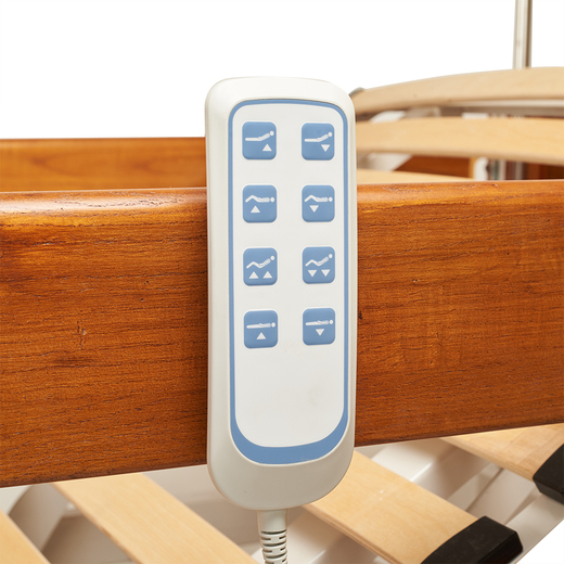 При помощи дистанционного пульта осуществляется регулировка угла наклона ножной и головной секций, высоты ложа