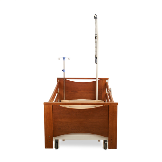Рама кровати имеет отверстия для установки стойки-держателя для внутривенных инъекций, устройства для подтягивания