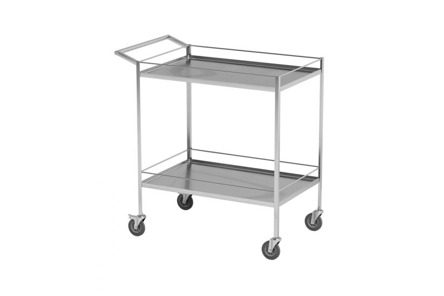 Столик инструментальныйОдна полка из стекла, другая полка из нержавеющей стали. Каркас металлический разборный, покрытие полимерно-порошковое белого цвета. Диаметр колес - 50 мм. Столик предназначен для размещения инструментов, материалов и медикаментов в перевязочных и операционных, а так же во всех лечебных учреждениях, медицинских, стоматологических и процедурных кабинетах.
