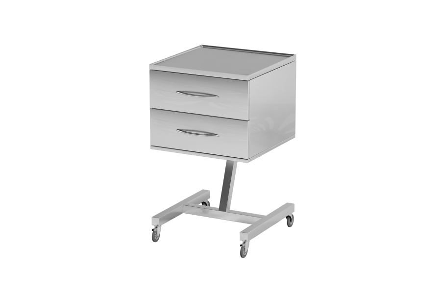 Каркас: нержавеющая сталь Столешница: нержавеющая сталь Ящики: 2 выдвижных ящика Колеса: 4 колеса Ø50 мм (2 колеса с тормозом) (серая резина)