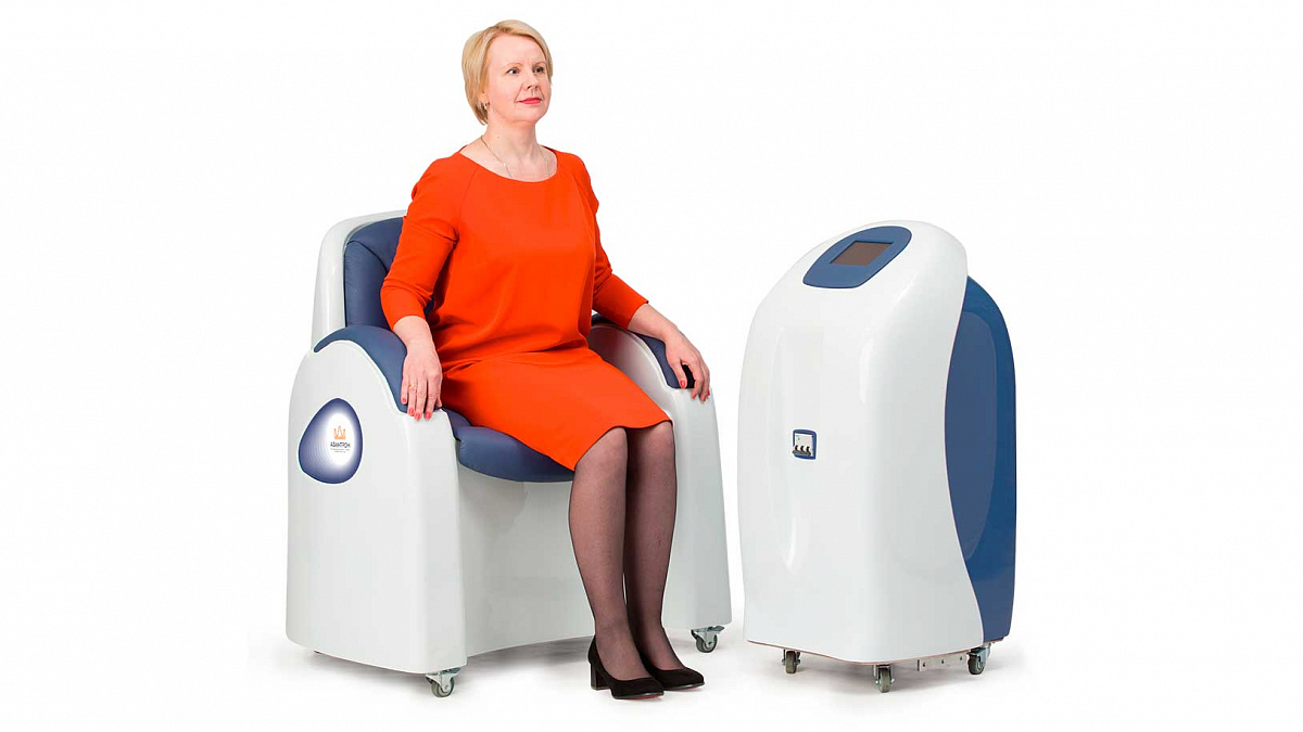 - «Авантрон» представляет собой специализированное кресло, в сиденье которого встроен магнитный индуктор. Устройство посылает дискретные импульсы, которые воздействуют на нервные волокна и стимулируют сокращение мышц тазового дна и органов малого таза с последующим расслаблением. Происходит их тренировка, улучшается кровоснабжение, нормализуются ритмические процессы.