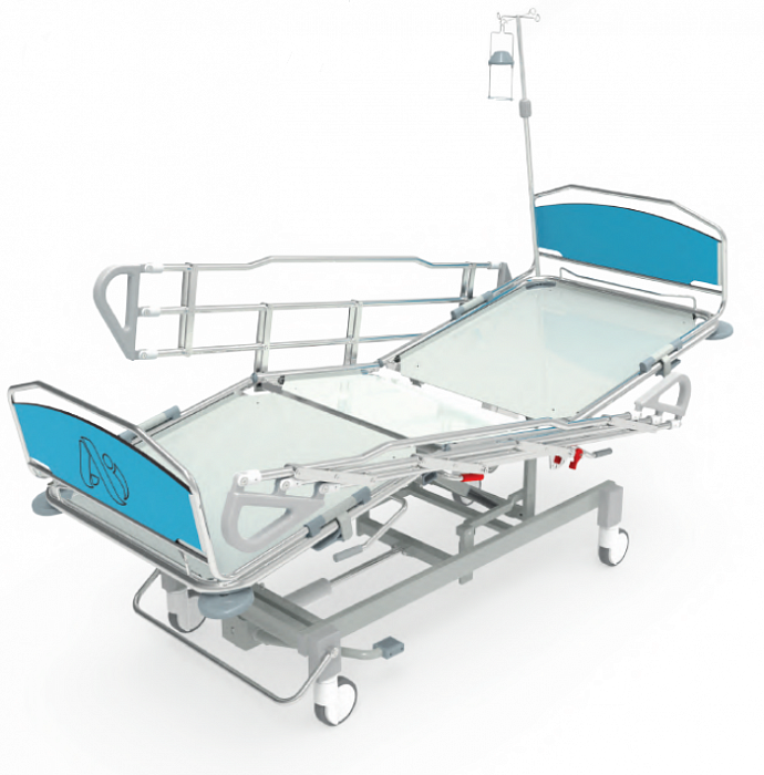 - Плавная регулировка спинной секции и ножной секции по углу наклона с помощью электропривода. Приведение ложа в положение Тренделенбург с помощью пневматических пружин.