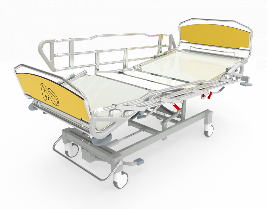 - Плавная регулировка спинной секции и ножной секции по углу наклона с помощью пневмопружины. Приведение ложа в положение Тренделенбург с помощью пневматических пружин.