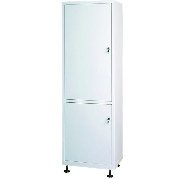 Корпус медицинского шкафа установлен на регулируемые ножки.