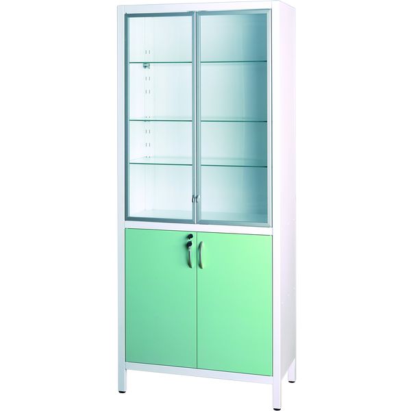 Корпус медицинского шкафа установлен на ножки с регулируемыми опорами.
