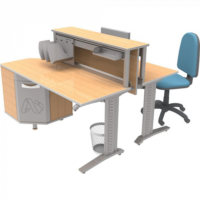 Силовой каркас системы выполнен из металла с порошковым полимерным покрытием. Рабочая поверхность ЛДСП 22 мм. Регулируемые опоры позволяют скомпенсировать неровности пола.