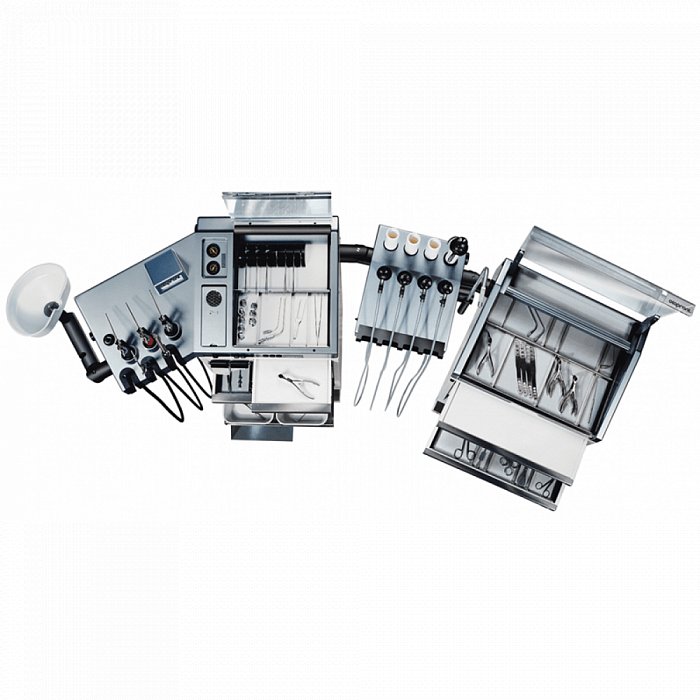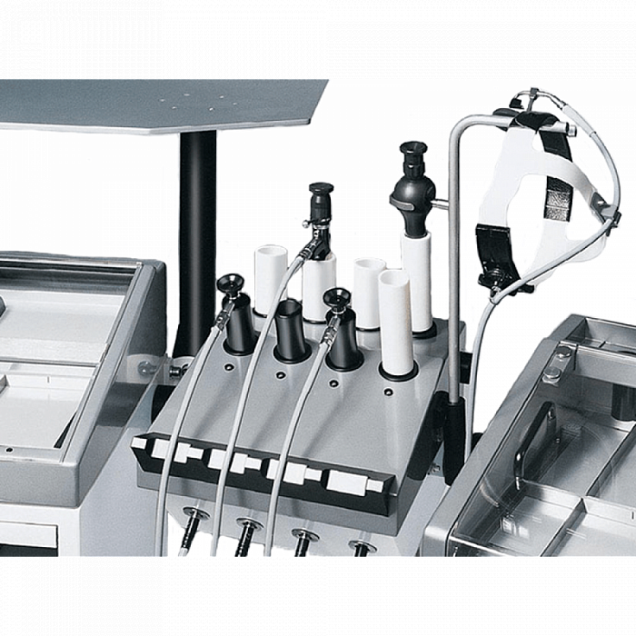 - Устройство орошения теплой водой (с подогревом до 38°С) с хромированной рукояткой (автоклавируемой). Трубки для промывания носовых пазух и фронтальные канюли.