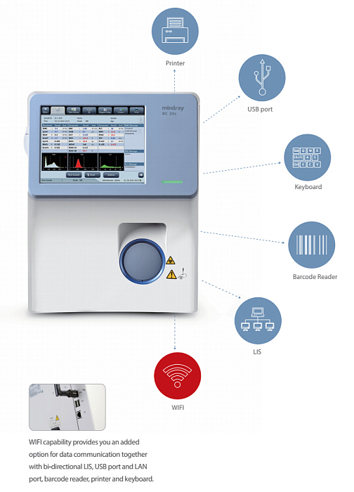 - Общий анализ крови с тремя лейкоцитарными формулами, 21 параметр для трех видов гистограмм