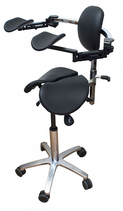 - Стул-седло Bestool Basic вместе с опорой Ergorest подходит для работы с микроскопом.