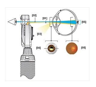 Полный обзор гарантируется даже при маленьком зрачке. фиксационно-измерительная сетка (звезда с полярными координатами); Углубленное, многослойное смотровое окно - возможность избежать рассеивания света; Пылезащищенный корпус - не требует обслуживания; Оптика смонтирована на точном, металлическом шасси; Эргономичная форма; Мягкая пластмасса вокруг смотрового окна - защищает очки пользователя. Диапазон линз дает хорошие результаты даже с высокими нарушениями рефракции.