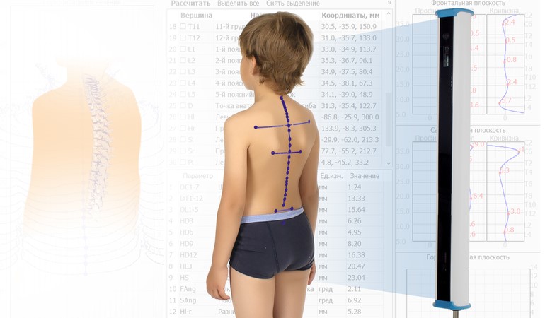 Метод оптической компьютерной топографии является скрининговым и показан для первичной диагностики при аномалиях осанки, плоскостопии, изменениях строения грудной клетки, искривлениях позвоночника: боковом, патологическом кифозе, лордозе, разной длине ног, перекосе тазовых костей.