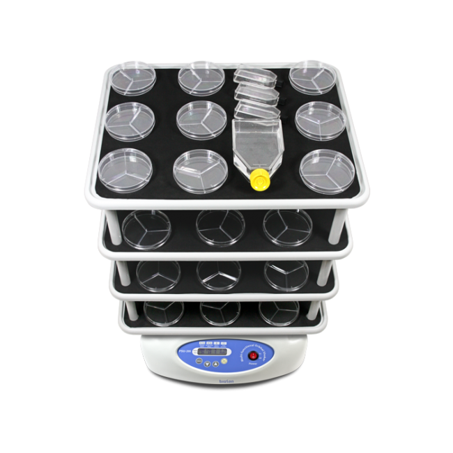 - Особое внимание обращаем на многоэтажную платформу, которая позволяет размещать большое количество различных планшетов, чашек Петри, культуральных мешков и других невысоких контейнеров.
