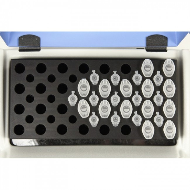 - Металлическая отражательная пластина, установленная в крышке термостата, предотвращает формирование конденсата на крышке микропробирок.