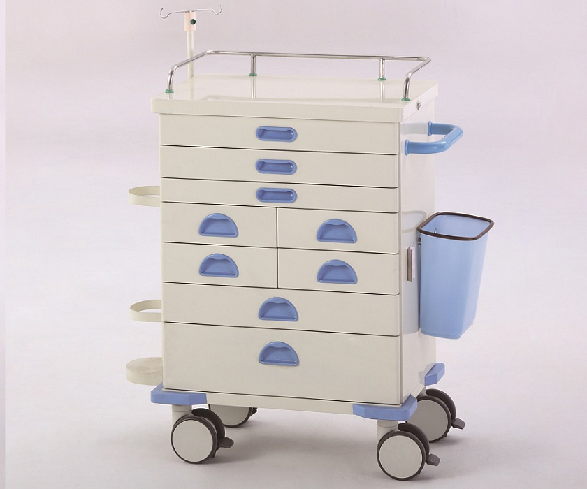 Два верхних ящика снабжены тремя пластиковыми поддонами с сотами-ячейками (по 20 ячеек в одном поддоне) для медикаментов