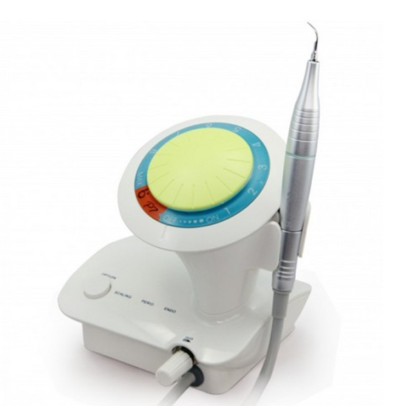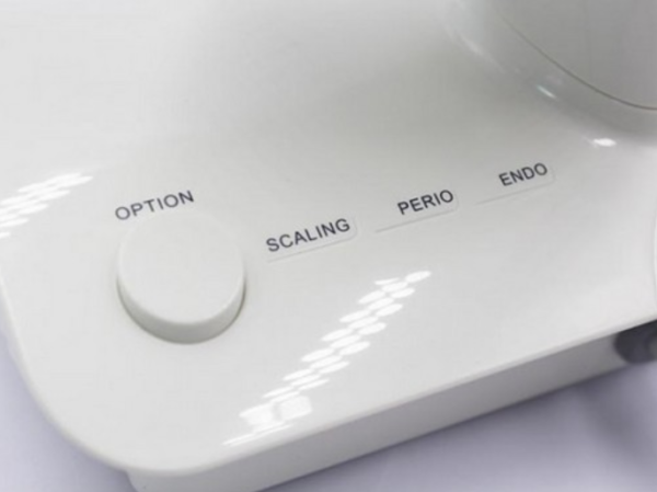 Скейлер оснащен возможностью регулировать амплитуду и мощность колебаний от малого к большому. Это дает возможность комфортно работать в трех режимах: Scaling, Perio и Endo. Для увеличения универсальности в комплекте со скейлером поставляется 6 насадок, а также эндочак, предназначенный для очистки и дезинфекции корневых каналов.