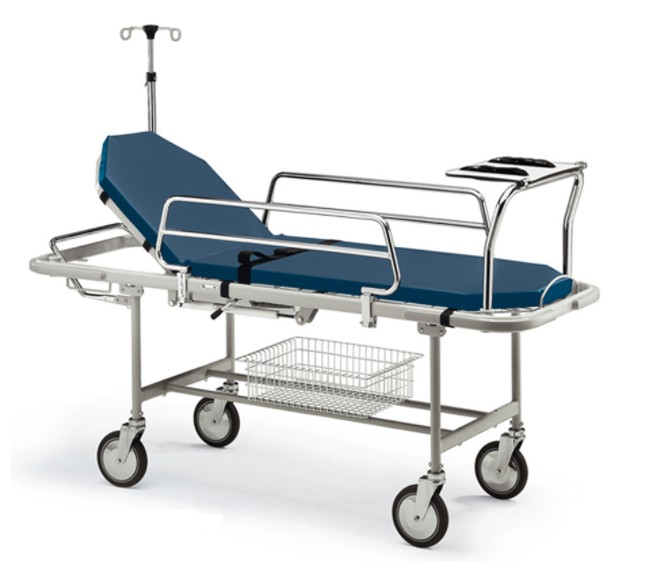 Перемещение каталки осуществляется с большой легкостью благодаря системе из 4-х колес, одно из которых антистатическое диаметром 200 мм; все колеса самоориентирующиеся с возможностью блокировки одного колеса как направляющего; 2 колеса с постоянным пружинным тормозом, который разблокируется путем воздействия на ручку вблизи рамы ложа со стороны головы пациента.Характеристика