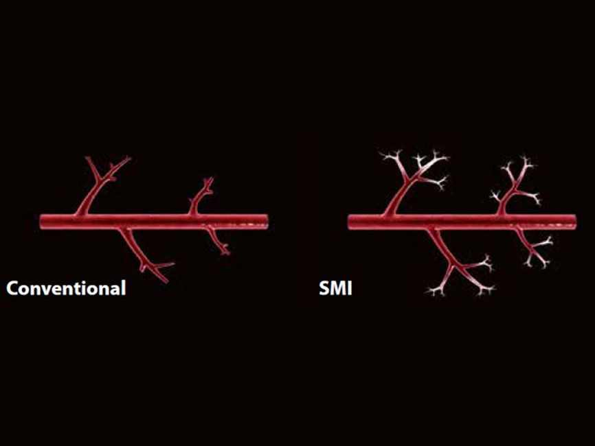 - SMI. Опция, упрощающая визуализацию микроциркуляторного русла. С ее помощью обследуются сосуды с низкой интенсивностью кровотока, изучаются наиболее тонкие структуры. SMI упрощает диагностику новообразований, минимизирует вероятность ошибки.