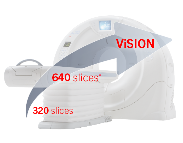 Томограф Aquilion ONE ViSION позволяет проводить сканирование поверхности 160 мм за один оборот. Технология позволяет проводить исследование без спирального сканирования, которое характеризуется наличием зон перекрытия. За счет этого доза облучения снижается, а искажения на «сшитых» изображениях устраняются.