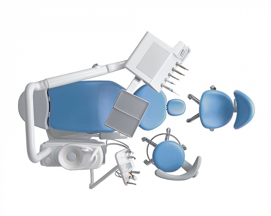 - автоматическая система задержки выключения вакуумной аспирации пульт управления креслом, светильником, наполнением стакана и омывом плевательницы, система гигиены.