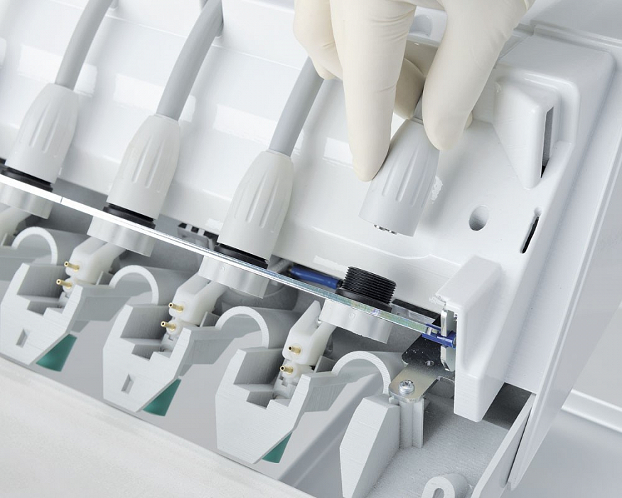 - возможность установки 5 инструментов: дополнительного водо-воздушного пистолета, лампы для полимеризации, микромотора или турбины