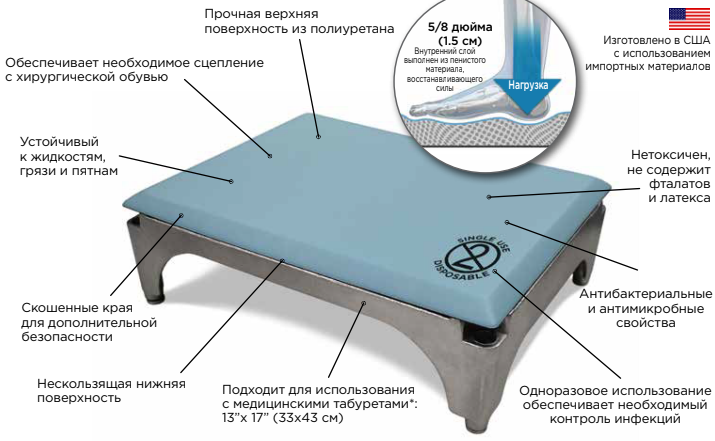 Представляет собой эффективное эргономичное решение для хирургов, медсестер и техников, которым необходимо стоять на медицинском стуле во время напряженных операций. Глубокая подкладка и превосходный комфорт ковриков смягчают дискомфорт в ногах, ногах и спине для повышения производительности и концентрации во время операции.