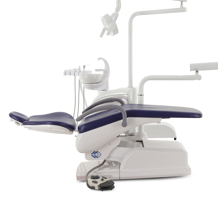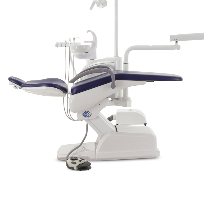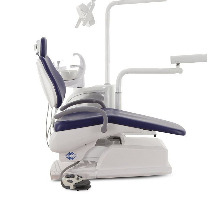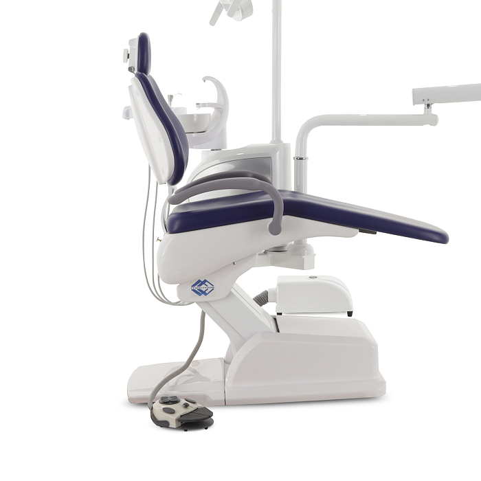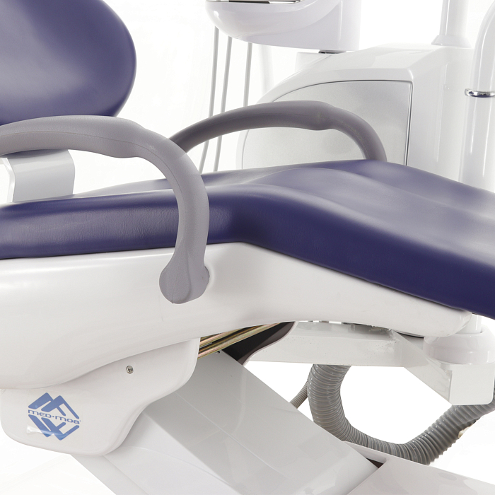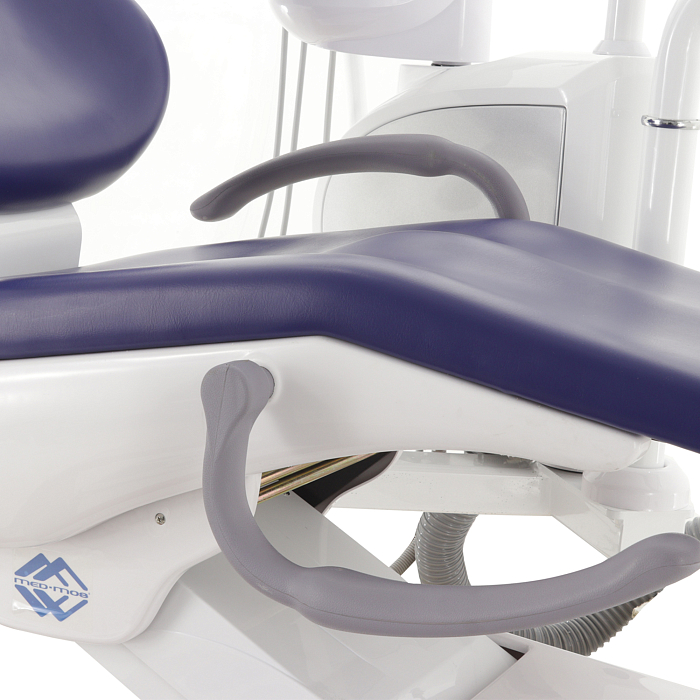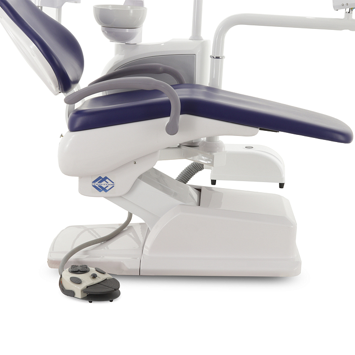 Кресло пациента с правым откидным подлокотником, двумя взаимозависимыми двигателями регулировки положения.