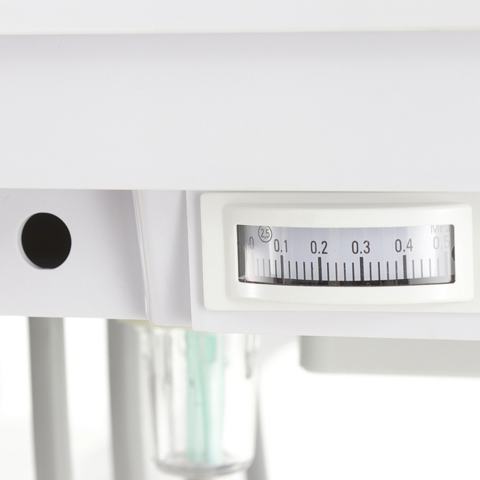 Гидроблок оснащен поворотной керамической чашей плевательницы, бутылкой для подачи дистиллированной воды, выносной блок коммуникаций.