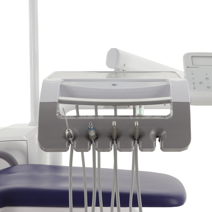 Держатели шлангов на модуле врача с верхней подачей имеют фиксацию инструмента в рабочем положении, что повышает комфорт работы врача.