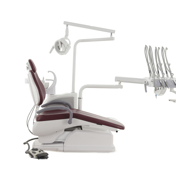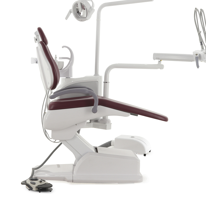 Кресло пациента с правым откидным подлокотником, двумя взаимозависимыми двигателями регулировки положения.