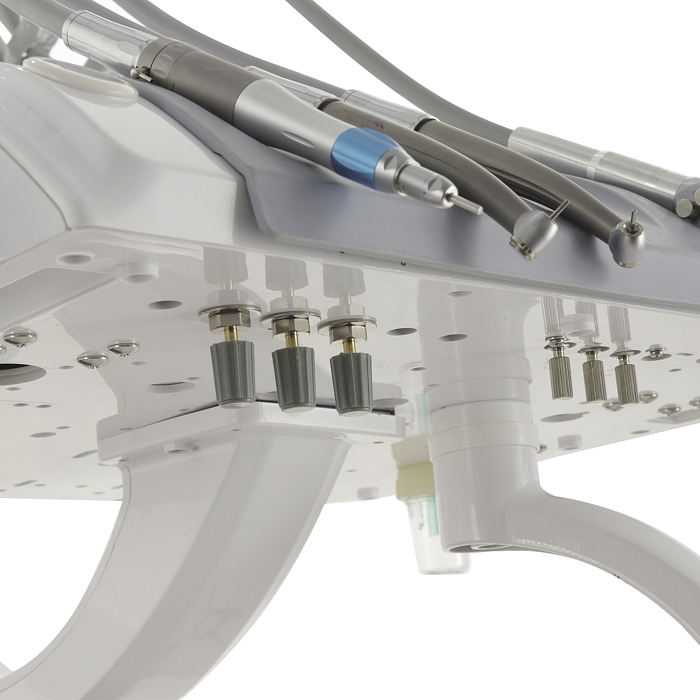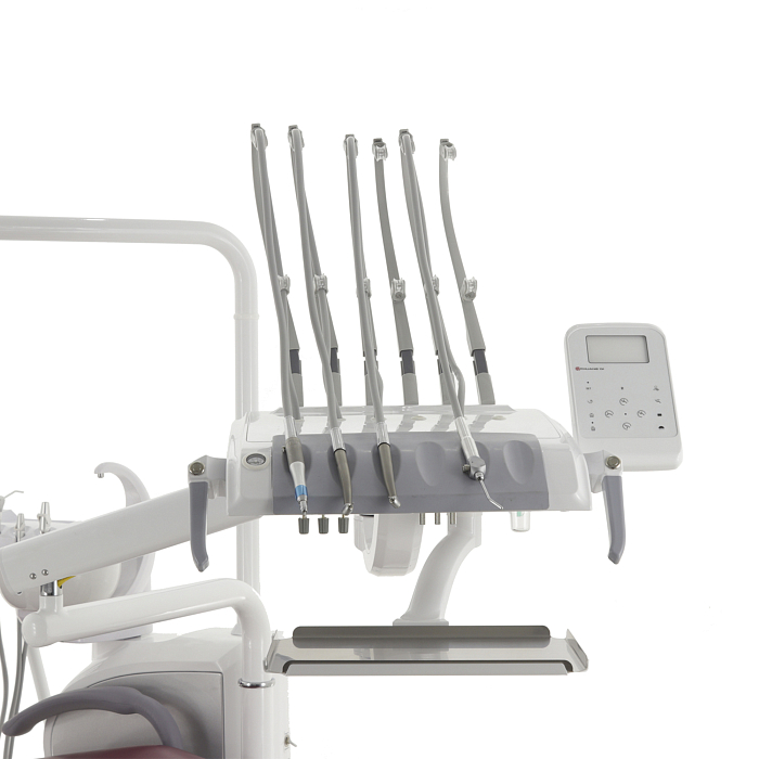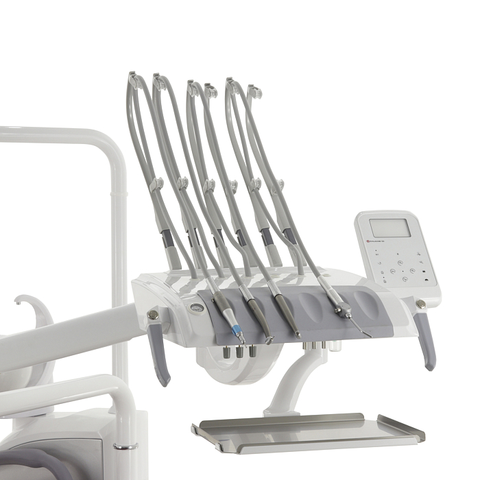 Держатели шлангов на столике с верхней подачей имеют фиксацию инструмента в рабочем положении, что повышает комфорт работы врача.