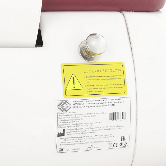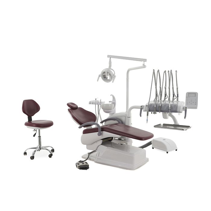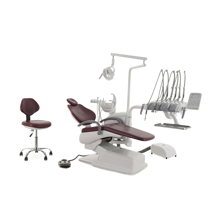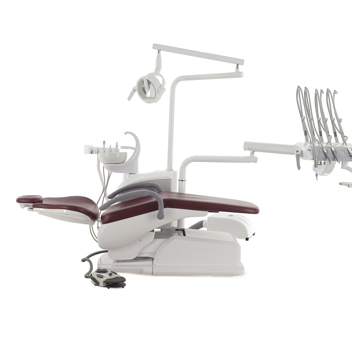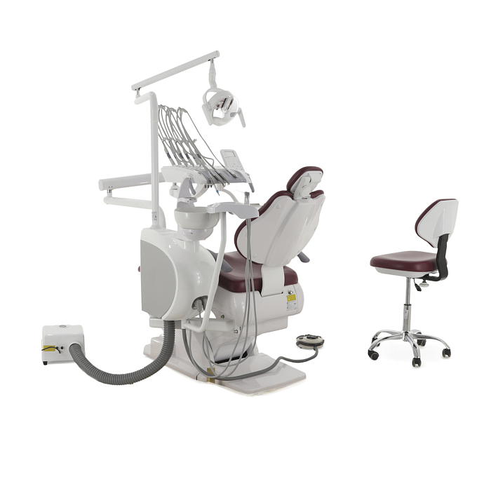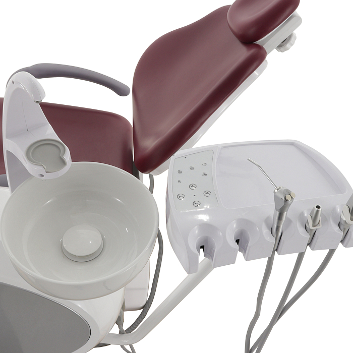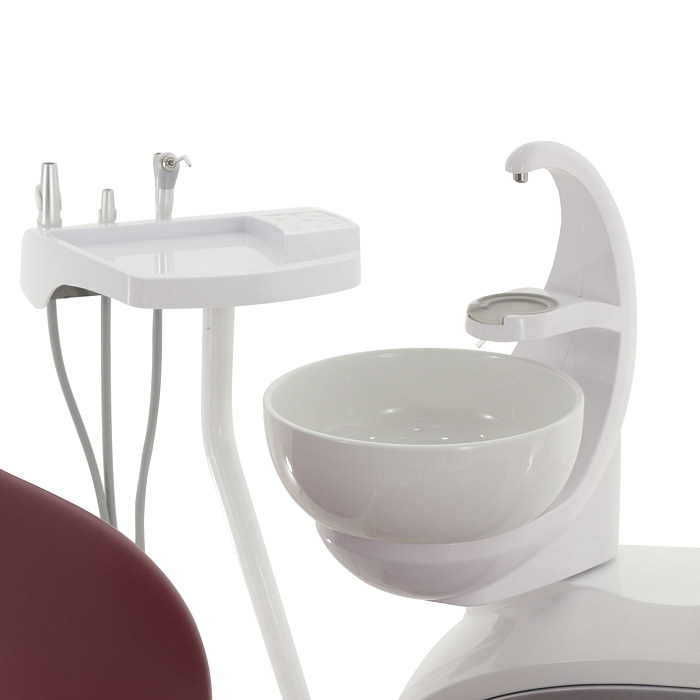 Гидроблок оснащен поворотной керамической чашей плевательницы, бутылкой для подачи дистиллированной воды, выносной блок коммуникаций.