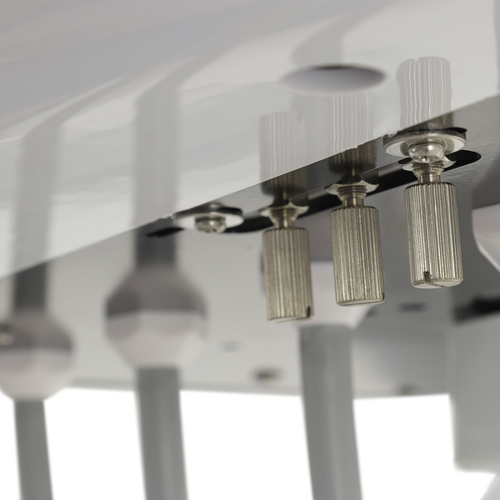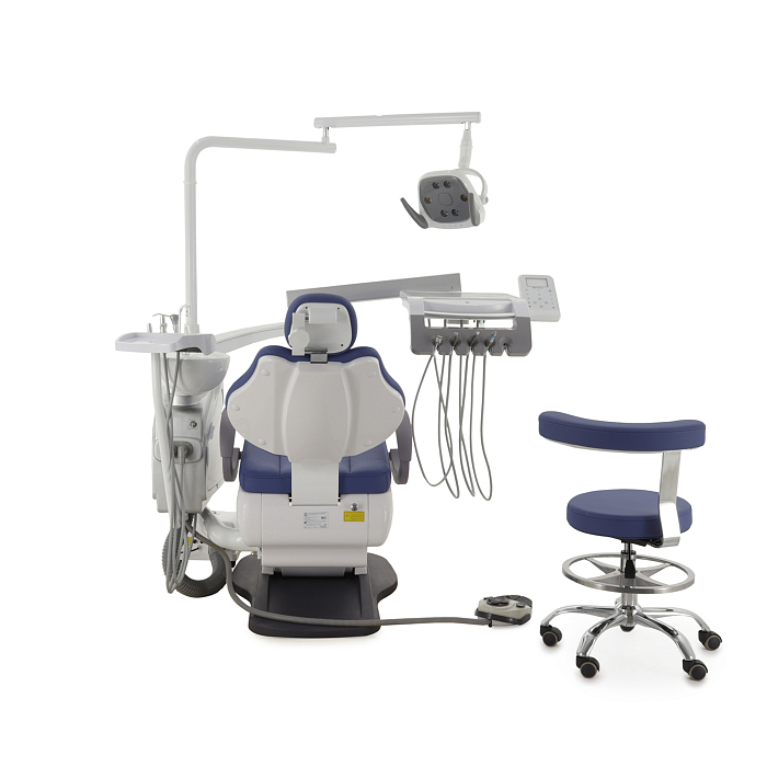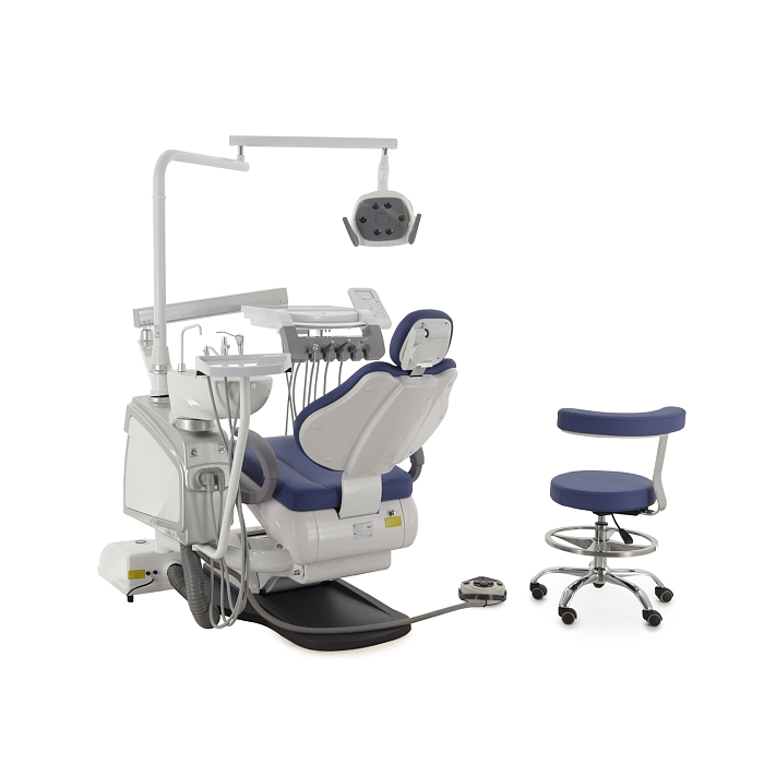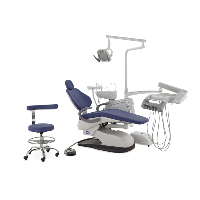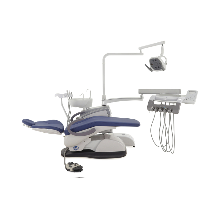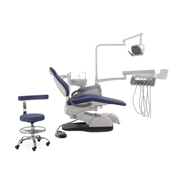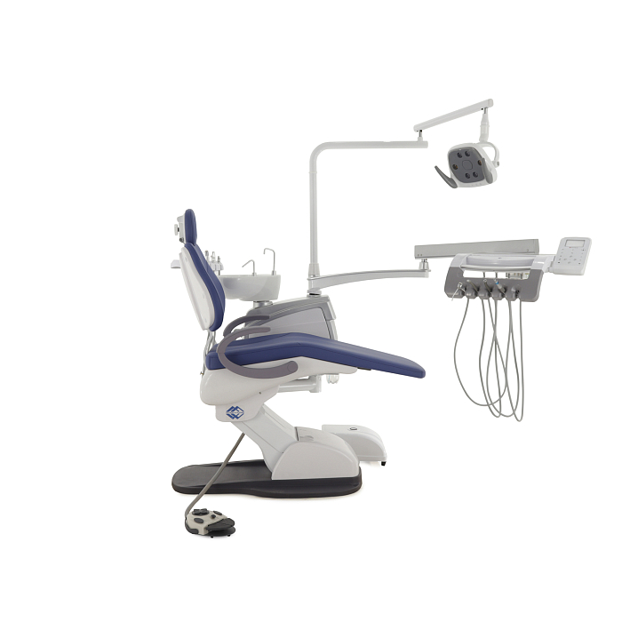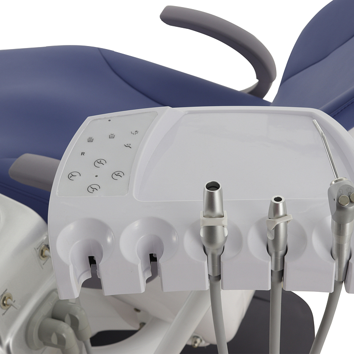 Поворотный гидроблок оснащен поворотной керамической чашей плевательницы, бутылкой для подачи дистиллированной воды, выносной блок коммуникаций.