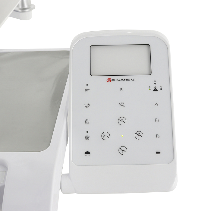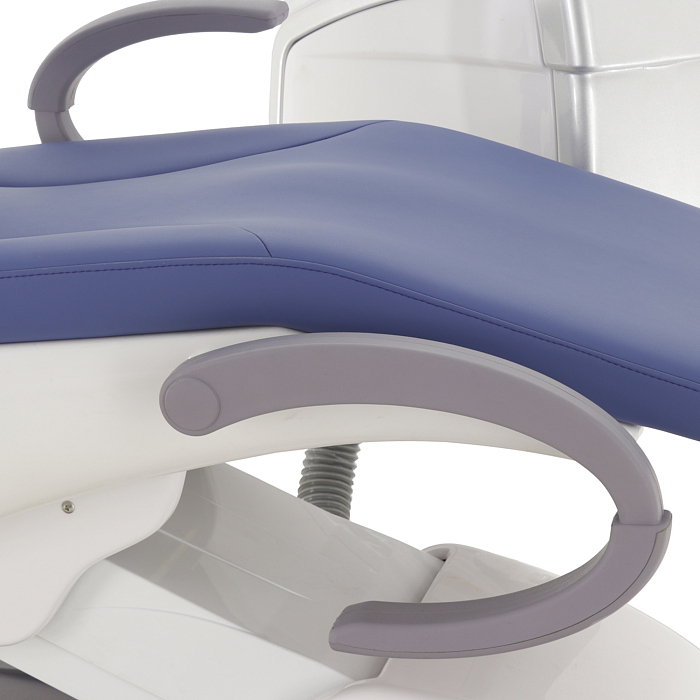 Кресло пациента с правым откидным подлокотником, двумя взаимозависимыми двигателями регулировки положения.