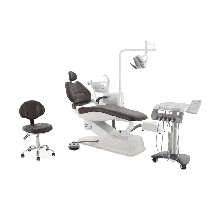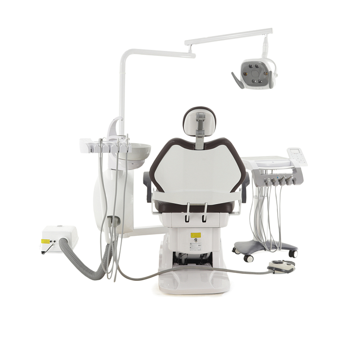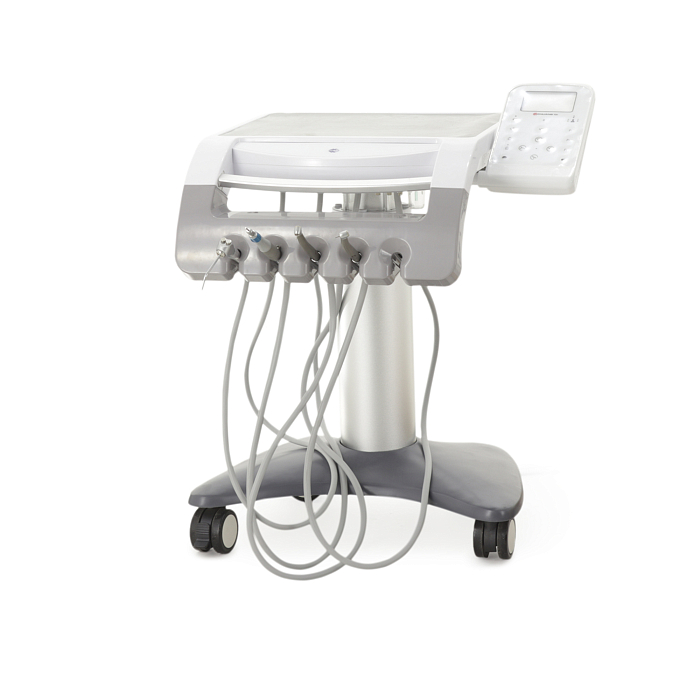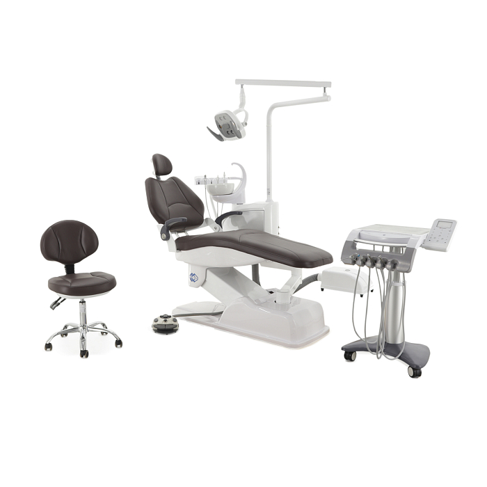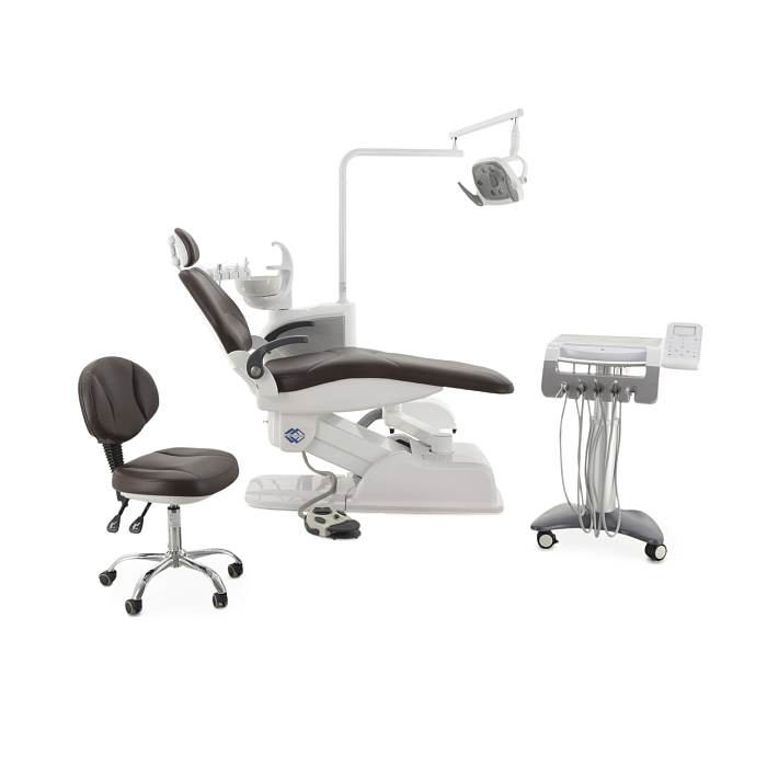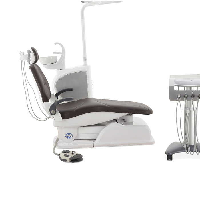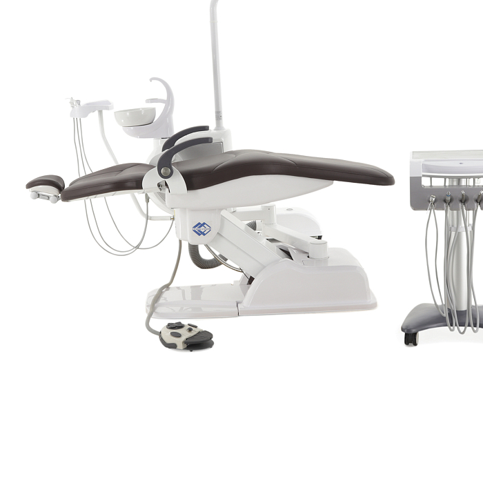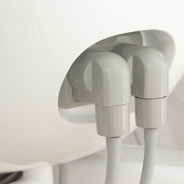 Поворотный гидроблок оснащен поворотной керамической чашей плевательницы, бутылкой для подачи дистиллированной воды, выносной блок коммуникаций.